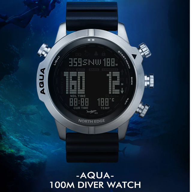 Просунуті функції для дайвінгу: NORTH EDGE AQUA WHITE володіє всіма необхідними функціями для безпечного й захопливого занурення, включно з режимами вільного плавання і плавання з кисневим балоном, а також відстеження часу без декомпресії (NDL).